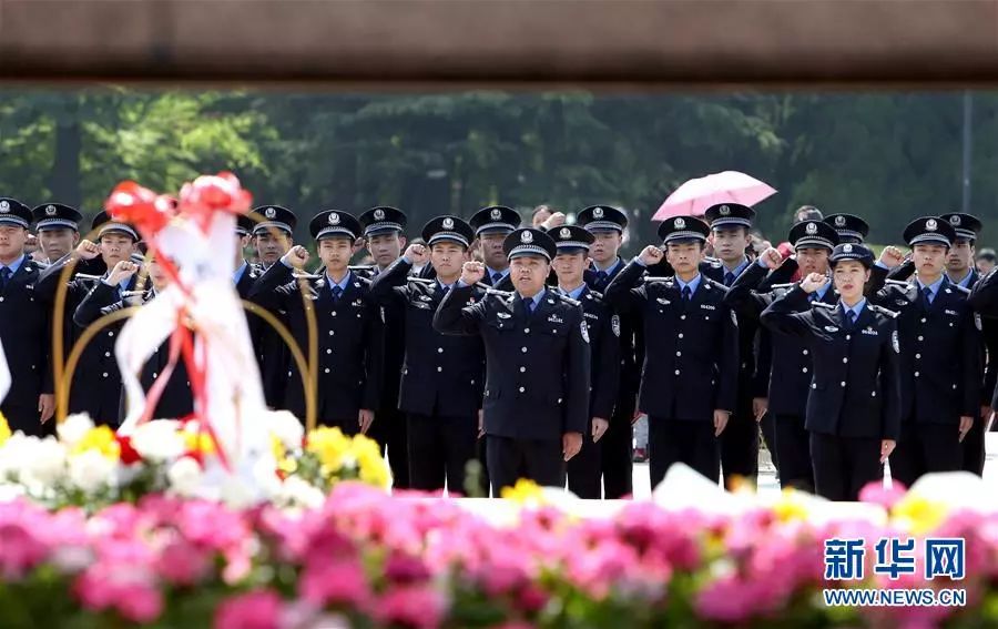 上海市公安局各级公安机关民警在上海龙华烈士陵园深切缅怀英烈。新华社记者 凡军 摄
